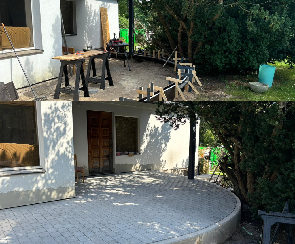 Väljas soojustasime sokli, ehitasime uue kivi terrassi.….